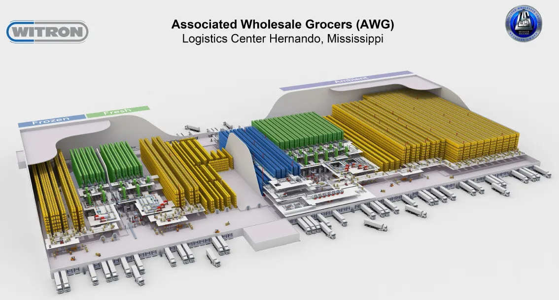 Richard Kearns always knows how his supply chains, his new warehouse in Hernando, Mississippi, or his logistics processes are performing - because he receives immediate feedback every single day. As Executive Vice President of Distribution & Logistics at Associated Wholesale Grocers (AWG), he serves demanding customers: the store operators are independent retailers who expect to be impressed by logistics performance every day. This is made possible by a highly automated full-range logistics center, designed and implemented by WITRON, which supplies 3,400 stores with a portfolio of currently 54,600 different dry, fresh, and frozen items. The facility is designed for a daily picking capacity of more than 460,000 cases and ranks among the most innovative and high-performance logistics centers in the United States. The results achieved are impressive. Labor and transportation costs have been significantly reduced.