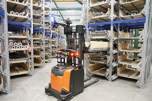Sinds mei 2021 maakt ConDoor Door Components zelf de veren van overheaddeuren. Daarvoor is in Emmen een verenafdeling opgezet met een uitgekiend logistiek proces. Daarin is een sleutelrol weggelegd voor de inrijstellingen van BITO. Dankzij de visgraatopstelling en de driehoekige consoles waarop de liggers rusten, profiteert ConDoor maximaal van de beschikbare ruimte en de hefhoogte van de AGV’s.