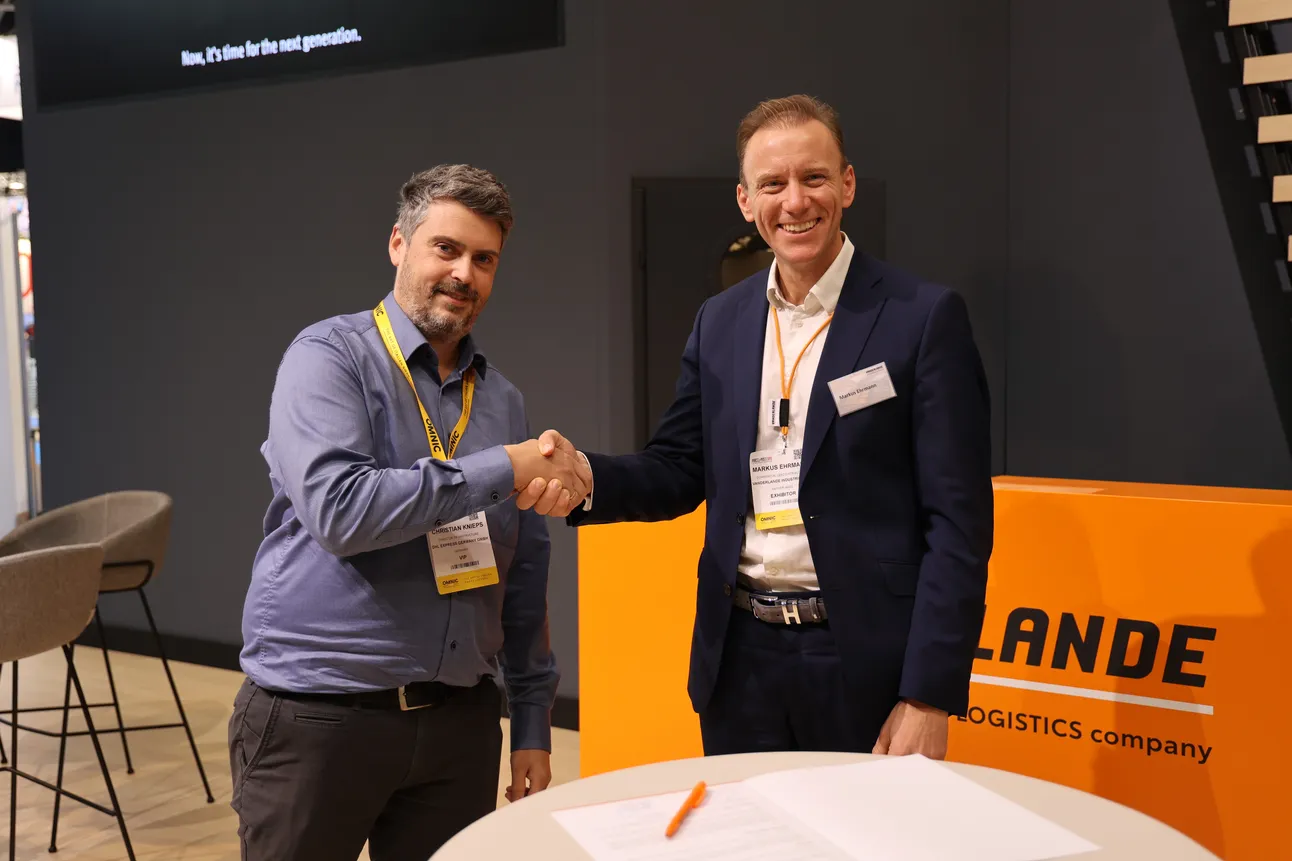 Foto: Christian Knieps, directeur engineering DHL Express Duitsland (links) en Markus Ehrmann, executive managing director Vanderlande