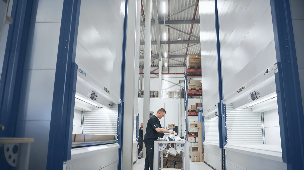 “In dit nieuwe pand hebben we ons magazijn en de productie opnieuw kunnen inrichten,” vertelt Roger Hanssen, Unit Manager Warehouse & Distribution. “Zo konden we onze productiviteit verdubbelen, mede dankzij Kardex.”