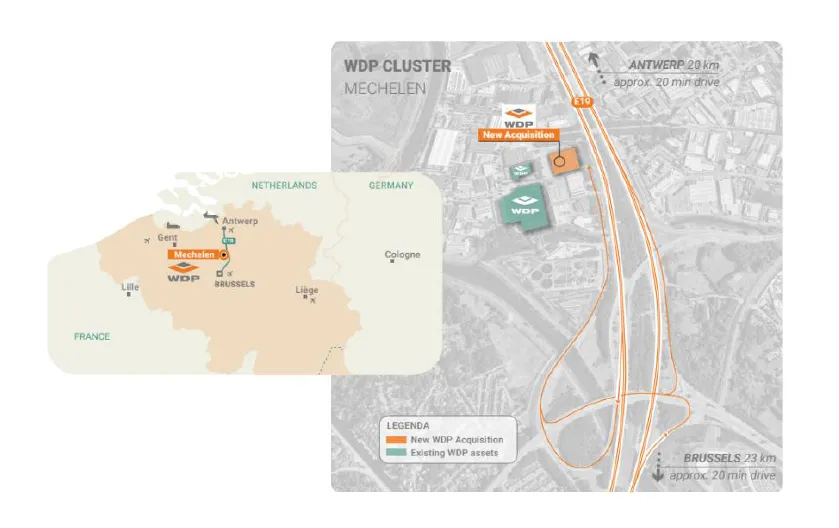 WDP, ontwikkelaar van en investeerder in logistiek vastgoed, breidt zijn aanwezigheid langs de E19 in Mechelen, tussen Antwerpen en Brussel, verder uit. De add-on acquisitie, omvat een totale oppervlakte van ongeveer 25.000m², met een verhuurbare oppervlakte van ruim 12.000m² en bijkomend ongeveer 4.000m² buitenopslag.